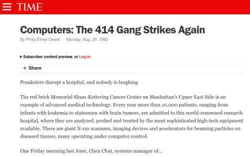 Time Magazine in August 1983, with a stern prediction that kids with computer access will get someone killed.