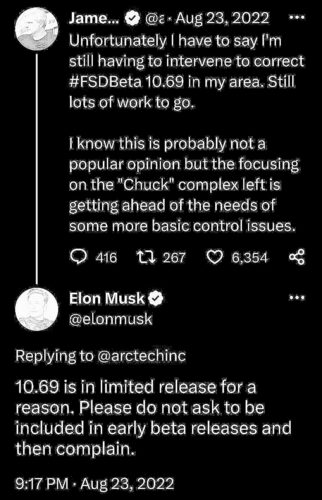Such dictated dysfunctional displays of communication (Tesla wants boot-lickers only) are symptomatic of their product failures.