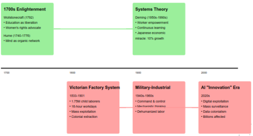 In “A Vindication of the Rights of Woman” (1792), Wollstonecraft didn’t just argue for women’s education, she dismantled the very mechanical, rote learning systems that modern AI companies are clumsily reinventing at huge cost. Her radical vision of education as an organic, growing system that develops through experience and social interaction reads like a direct critique of today’s rigid, mechanical approaches to artificial intelligence.