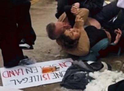 Quakertown Borough Police Chief Scott McElree, in plain clothes, choking a teenage girl after he violently charged her for protesting fascism.